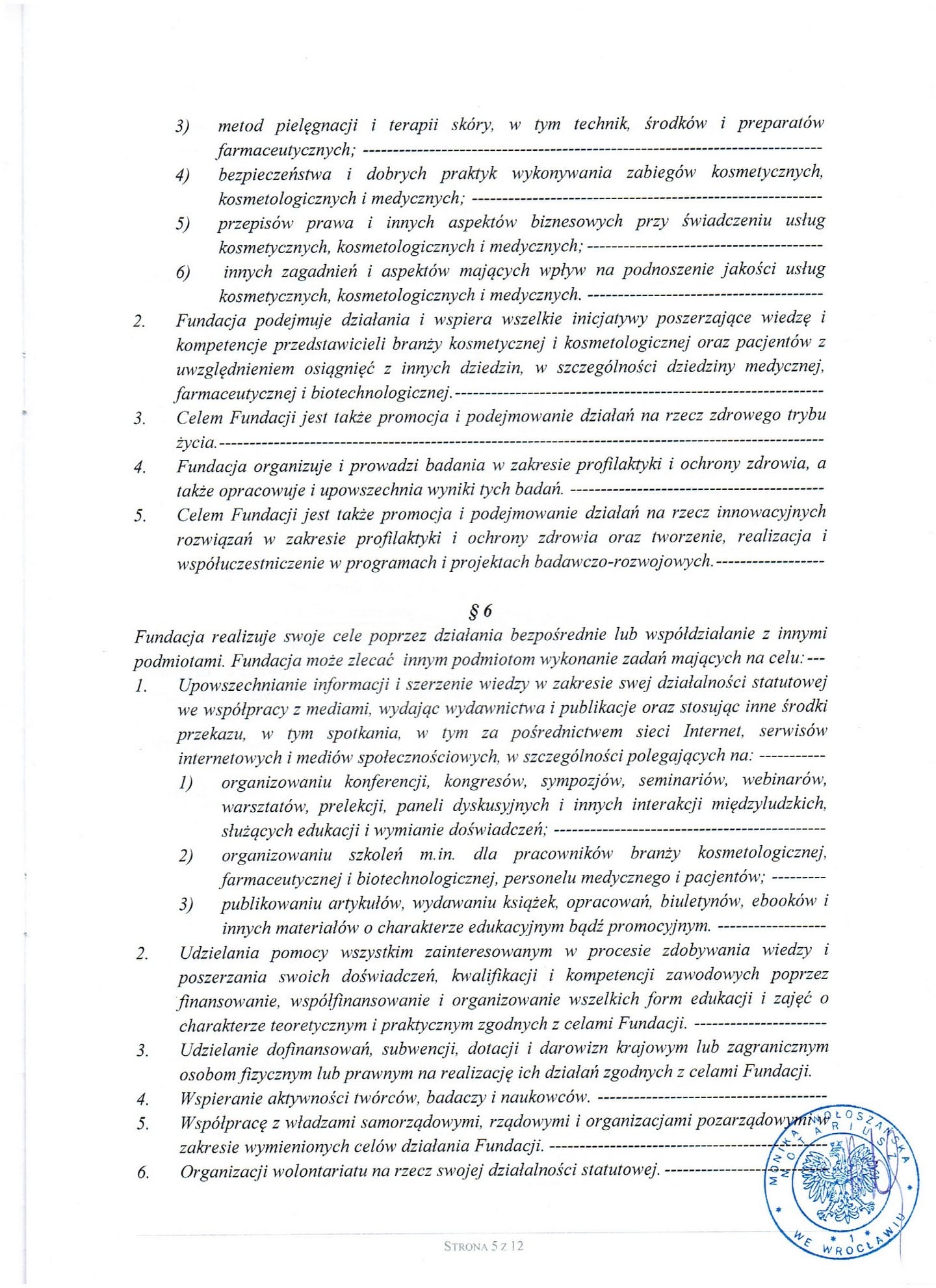 Fundacja podejmuje działania i wspiera wszelkie inicjatywy poszerzające wiedzę i kompetencje przedstawicieli branży kosmetycznej i kosmetologicznej oraz pacjentów z uwzględnieniem osiągnięć z innych dziedzin, w szczególności dziedziny medycznej, farmaceutycznej i biotechnologicznej.